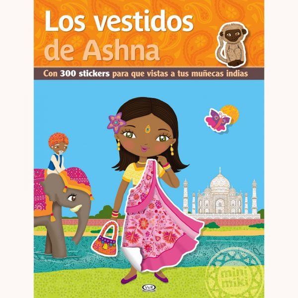 300 stickers para vestir a las muñecas con sus trajes típicos, además muestra lugares y costumbres tradicionales del país en amplios escenarios a toso color.