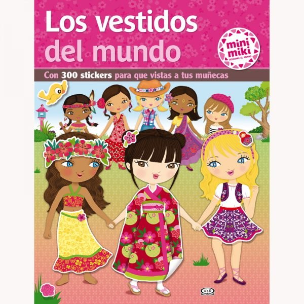 300 stickers para vestir a las muñecas con sus trajes típicos, además muestra lugares y costumbres tradicionales del país en amplios escenarios a toso color.