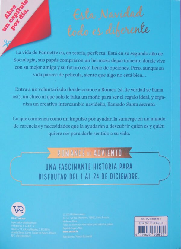 intercambio navideño, llamado Santa secreto. Lo que comienza como un impulso por ayudar, la sumerge en un mundo de carencias y necesidades que la ayudarán a descubrir quién es y quién quiere ser para darle sentido a su vida.